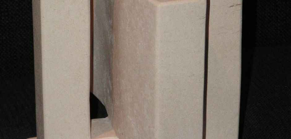 2007-2011Deze beelden zijn gemaakt van kalksteen en vormen een serie die steeds een rechthoek met een gebogen vorm combineren.